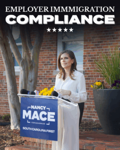 MYRTLE BEACH, S.C. – January 9, 2026 – Representative Nancy Mace today proposed the South Carolina Employer Immigration Compliance Act, legislation that would impose a $1,000-per-day fine on businesses that knowingly hire illegal aliens.