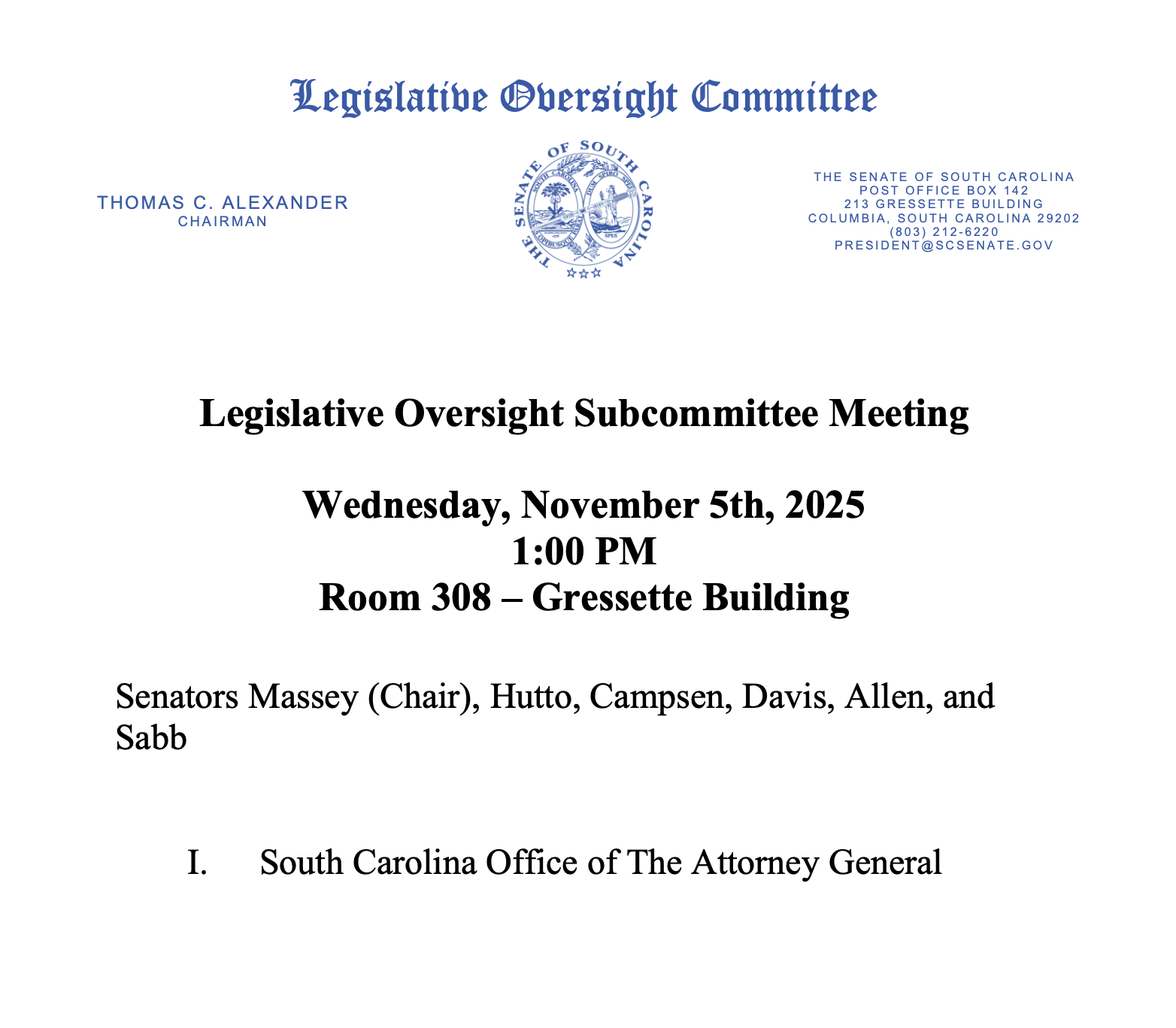 Charleston, S.C., October 30, 2025 – Following notice of an upcoming state Senate hearing scheduled for Wednesday, November 5, 2025, to review