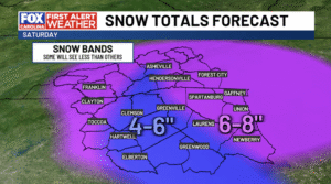 Snowfall Forecast: 8-12 inches in highest elevations, minimum 3 inches across entire Upstate