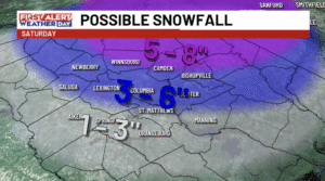 Snowfall Forecast: 3-6 inches in the northern Midlands, 1-3 inches southern areas toward Augusta